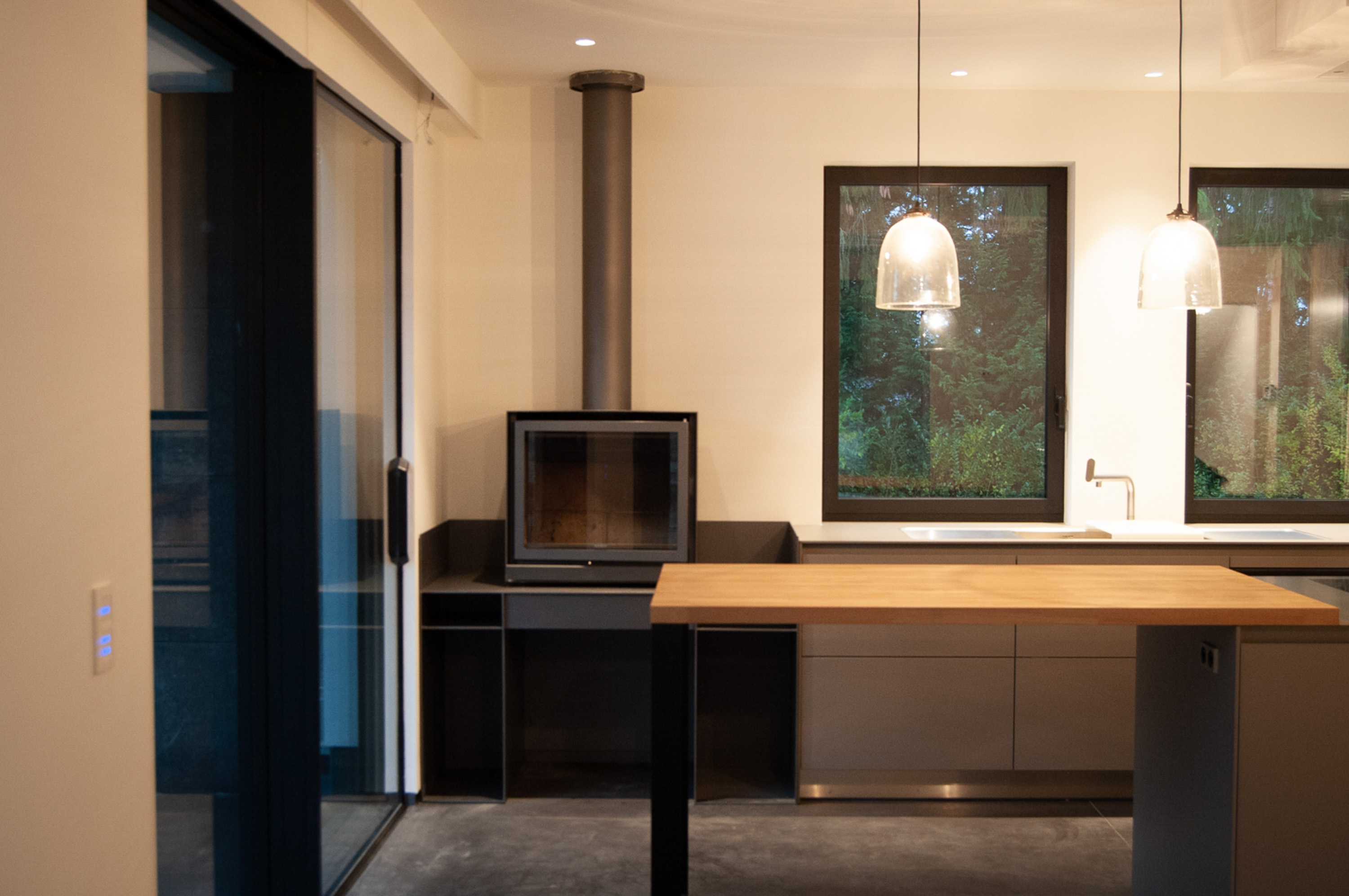 Transformation lourde et extension d’une maison unifamiliale. Chauffage sol partout, géothermie, domotique complète, mobilier intégré.