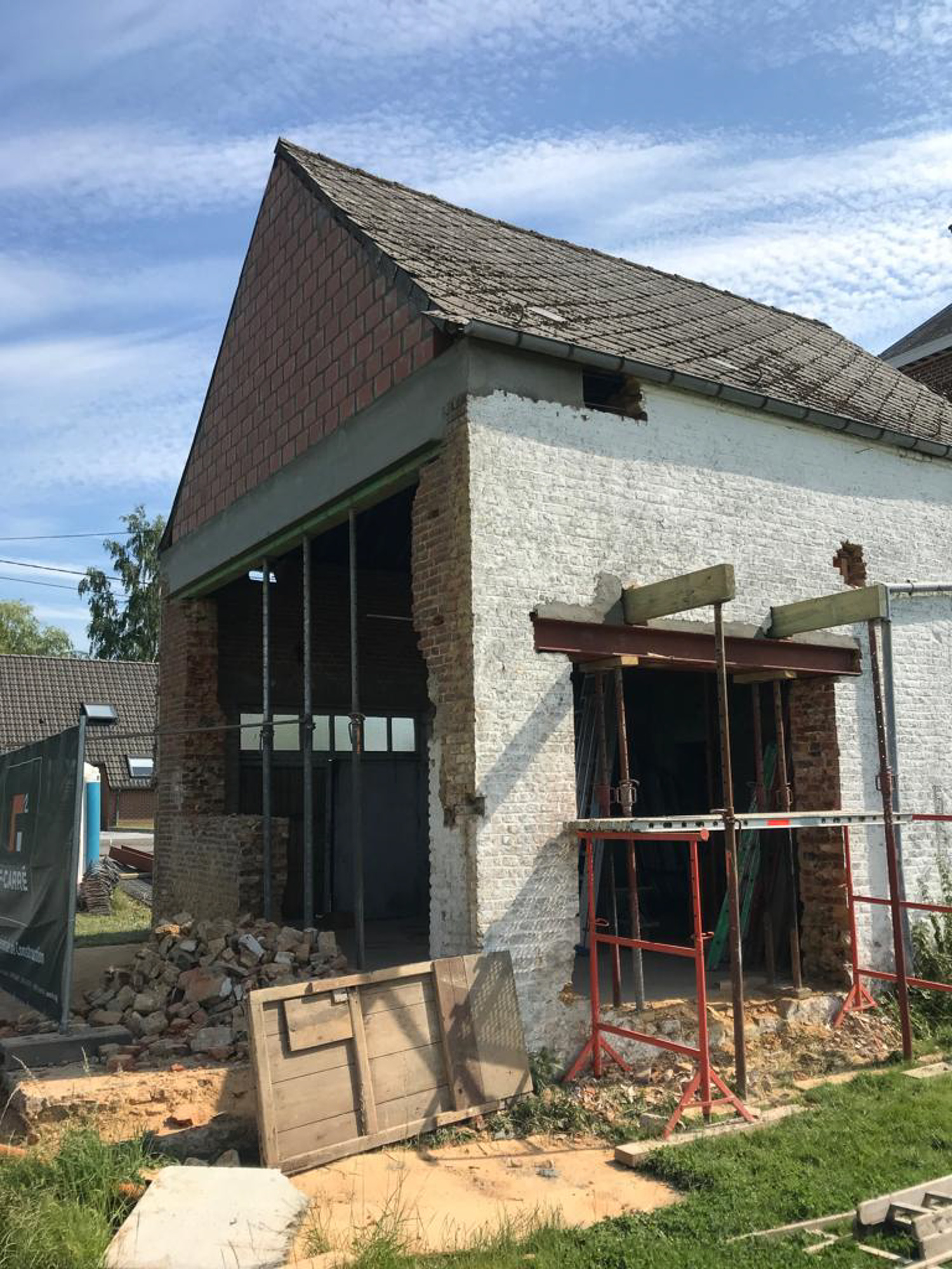 10 juillet 2019 Extérieur, Rénovation & Transformation LOB-Lobbes Galerie Fiche technique Chantier LOB : Transformation et extension d’une maison unifamiliale Localisation : Lobbes Année : 2019 Phase : En cours Surface : 480 m²